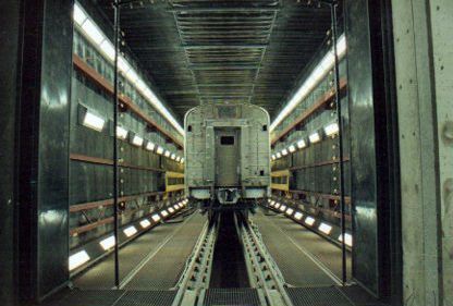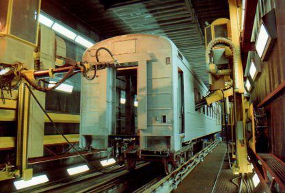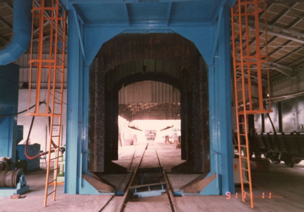 The shot blast machine is special designed for the purposes of de-painting and de-rusting on the surfaces of railroad coaches and wagons, the complete machine equipped with elevators and platforms for operators operation。The complete package includes blasting housing, abrasive reclaim & conveying system, abrasive separator, storage tank, pressure vessel blasting machine, elevators and platforms, wagon driving system, air supply system.
