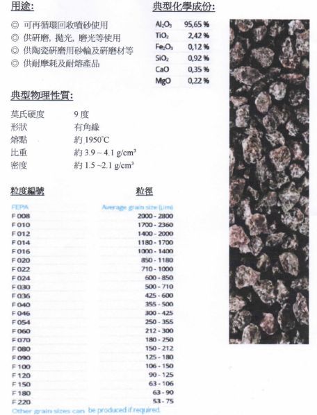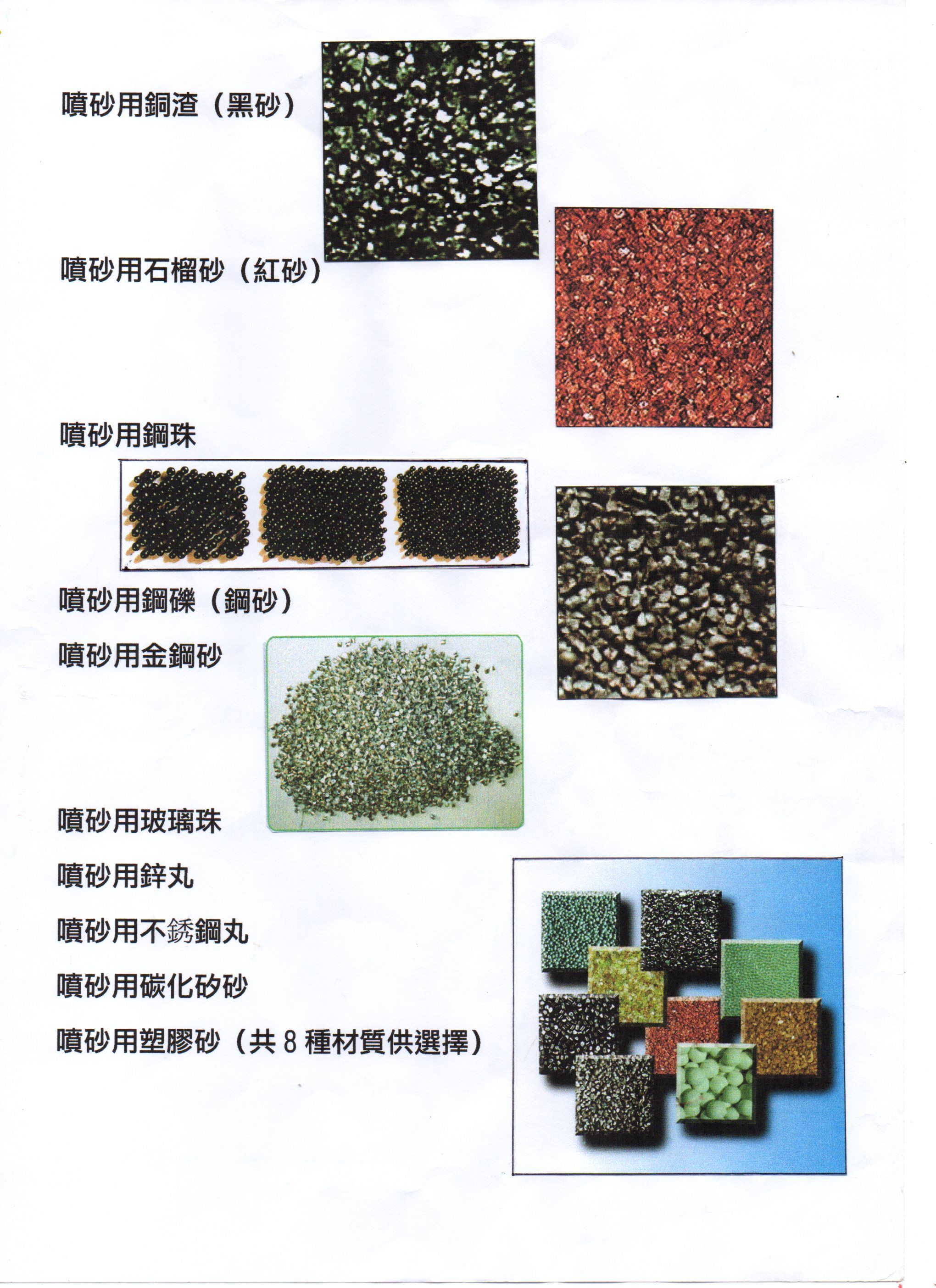 (5) 銅渣砂(黑砂)(6) 氧化鋁砂(7) 玻璃珠砂(8) 碳化矽砂(金剛砂)