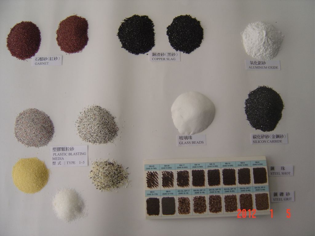 (1) plastic blast medias, type 1~5(2) steel grit(3) steel shot(4) garnet